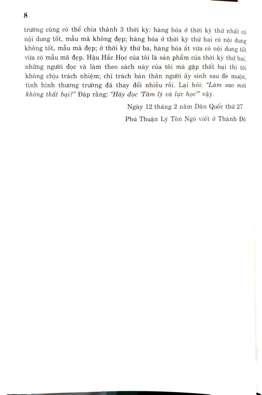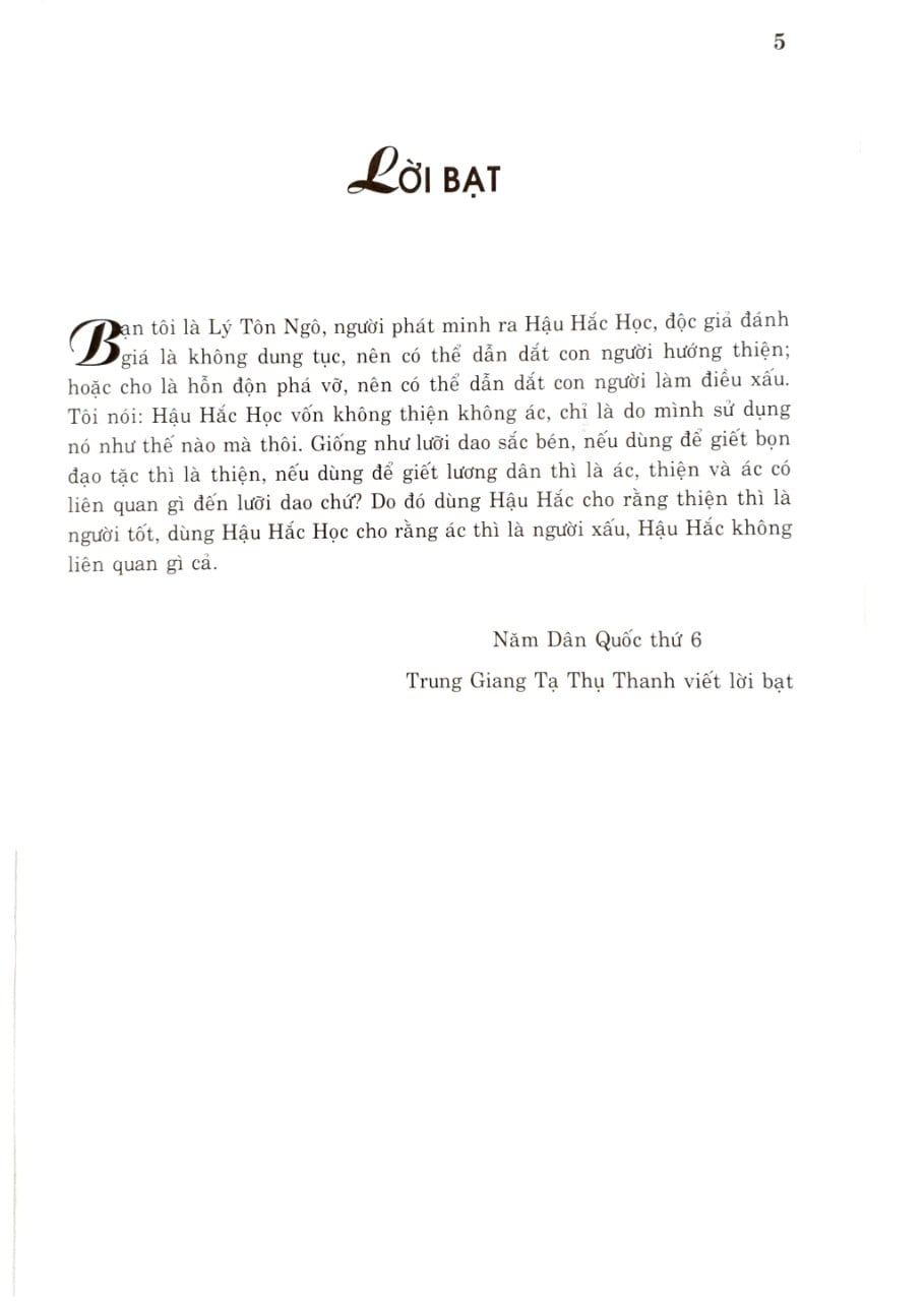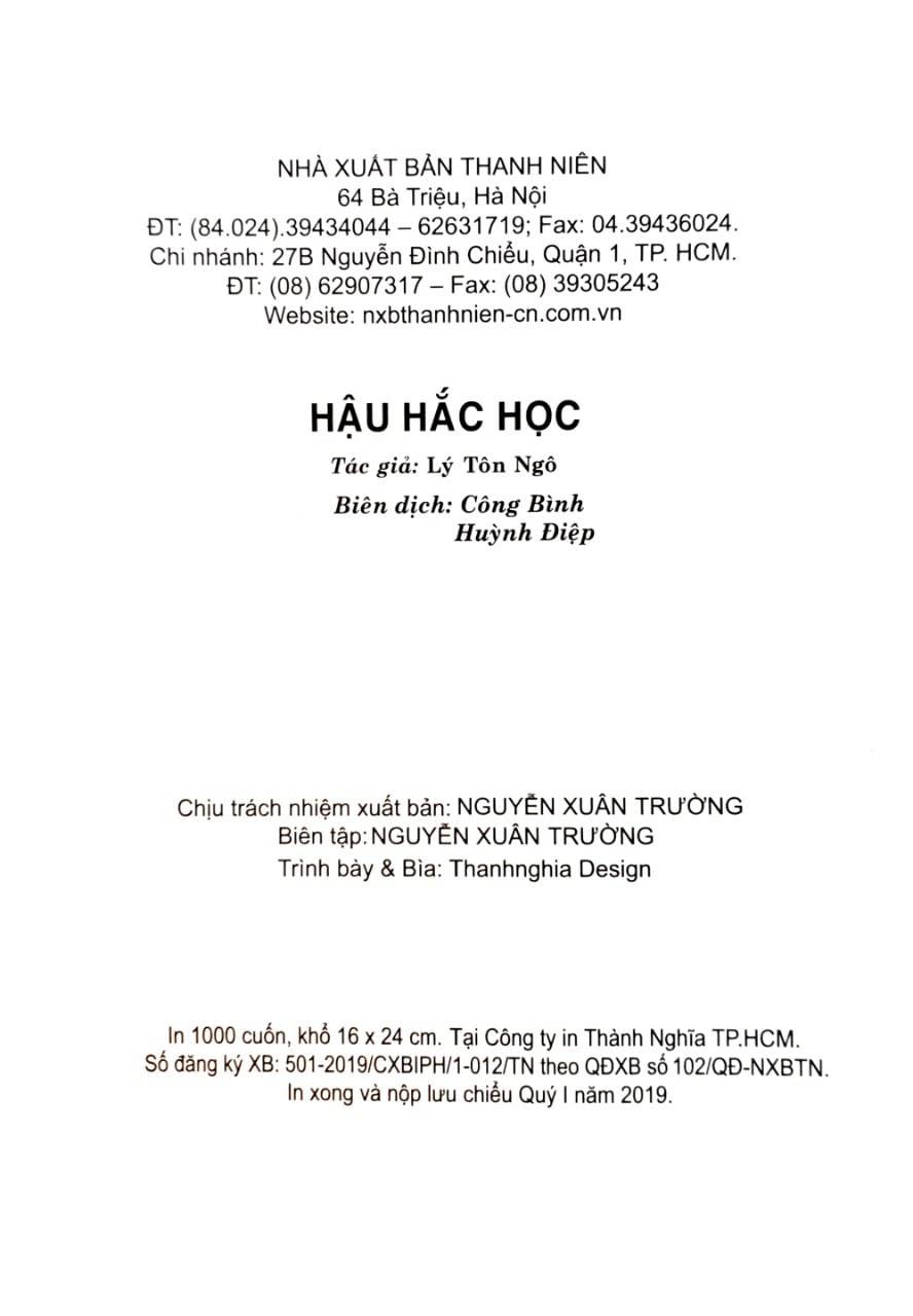 Hậu Hắc Học chế giễu sâu cay thói hư tật xấu trong chốn quan trường của xã hội Trung Quốc cũ . Bởi vậy , Hậu Hắc Học đã từng dấy lên sự công kính và đố kị dữ dội . Rất nhiều năm sau , năm 1943 , Hậu Hắc Học mới chính thức được xuất bản thành sách và được giới học giả cùng thời hưởng ứng nhiệt tình . Sau này , giới học giả Trung Quốc cho rằng Hậu Hắc Học là kỳ thư hiếm thấy . Để chứng minh cho lập luận Hậu Hắc Học của mình , Lý Tôn Ngô đã đi sâu tâm lý học và viết tiếp “Tâm lý và lực học” , “Tính linh và điện từ” đó là những công trình nghiên cứu mà ông tâm đắc.